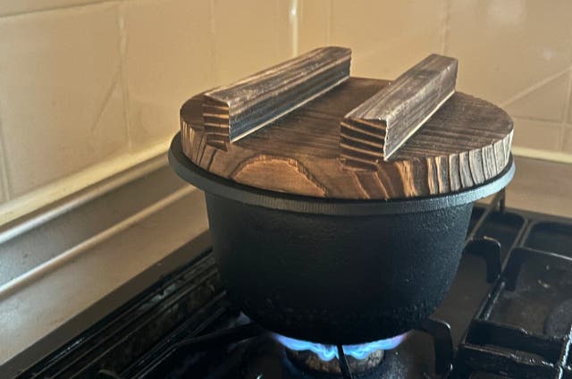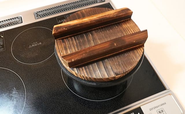 蓋は天然の杉材を使用。木蓋を焼くことで、その木の香りや風味が炊きあがりのごはんに移すことができます。これにより、杉の香りが料理に広がり、食材や料理の風味を豊かにする効果が期待されます。
