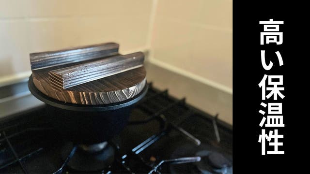 保温力に優れ、熱を鉄釜全体に均一に伝え、安定した調理をサポートします。一度温まると冷めにくいのも特徴です。
