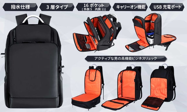 小分けに便利な3層タイプ×計16個のポケット リュック編