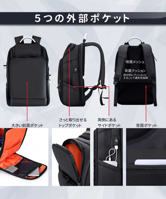 ・5種類の外ポケットで小物も失せにくい
