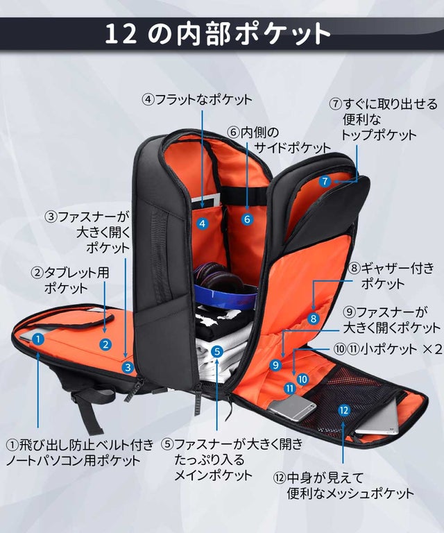 ・通勤用、通学用にもおすすめの大容量多機能リュックサックです。