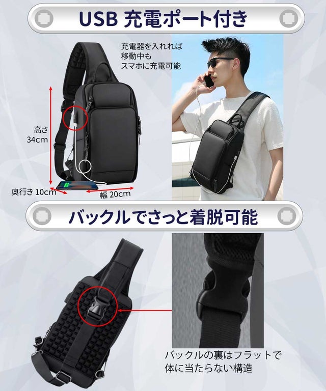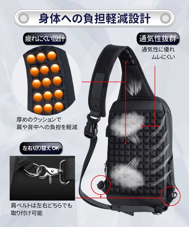 長時間使用でも疲れにくい設計 ボディバッグ編