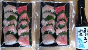(2)紅白マグロ丼4人前(140g×4)・藤野マグロ醤(150㎖)セット¥10,000 50セット(税込送料込)