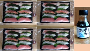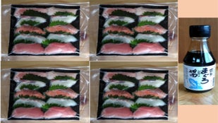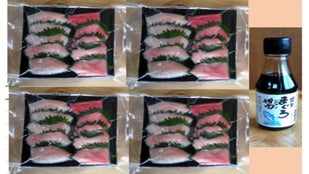 噛むほどに醤油の風味と旨味がマグロ、シマアジ、真鯛、サーモンの味が凝縮されます。