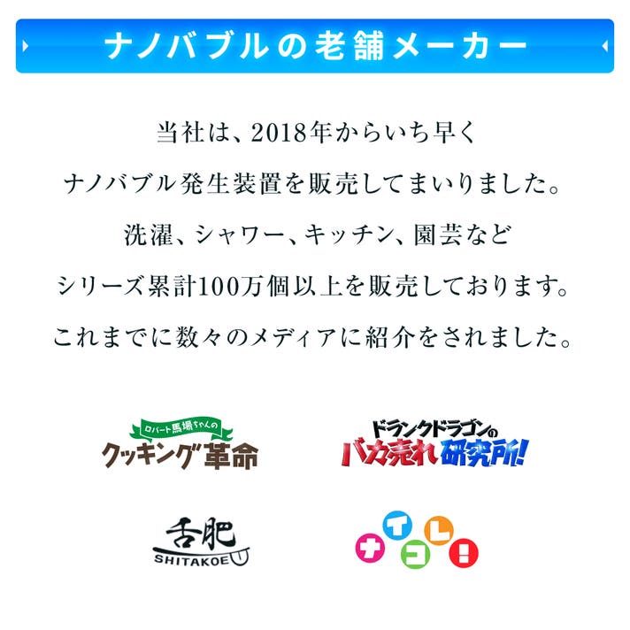 - シリーズ累計100万個以上の販売┃老舗ナノバブルメーカの新商品