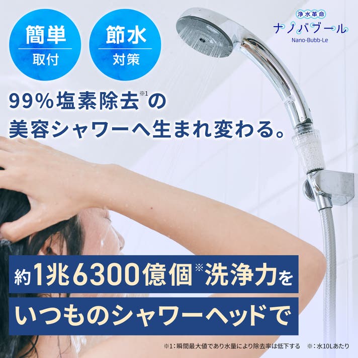 - ≪ナノバブル大量発生×塩素除去99%≫で自宅のシャワーを手軽にグレードアップ