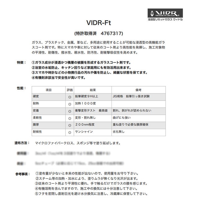- 浸透型・高機能のナノガラスコート剤。効果効能に安心な特許取得済 4767317号