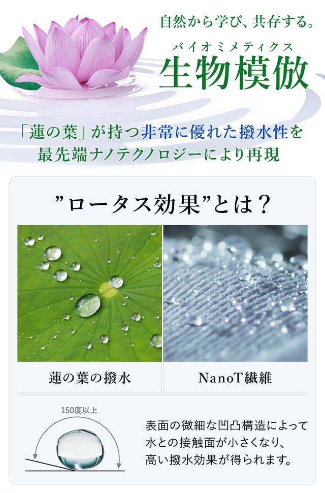 - 【蓮】の力で超撥水!自然が生み出した最新ナノテクノロジーで汚れにくく新品の美しさが長続き