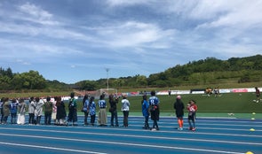 ・2019年3月17日奈良クラブ開幕戦@ならでんフィールドにて、試合前の選手のピッチ内ウォーミングアップをタータン(青色)よりご見学いただけます。