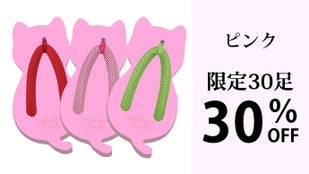 かわいいにゃんこシルエットのげた。 その名も「にゃらげたキュート」は、見た目のかわいらしさはもちろんのこと、足に優しいクッション性とソフトな布鼻緒の組合せで、なんとご自分で鼻緒交換していただけます。
