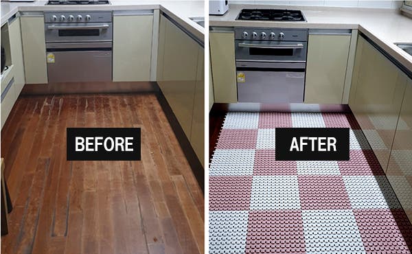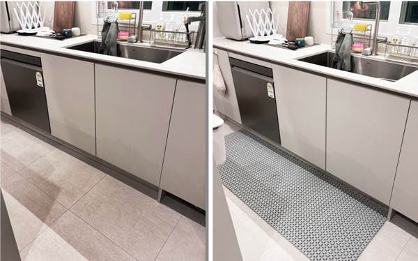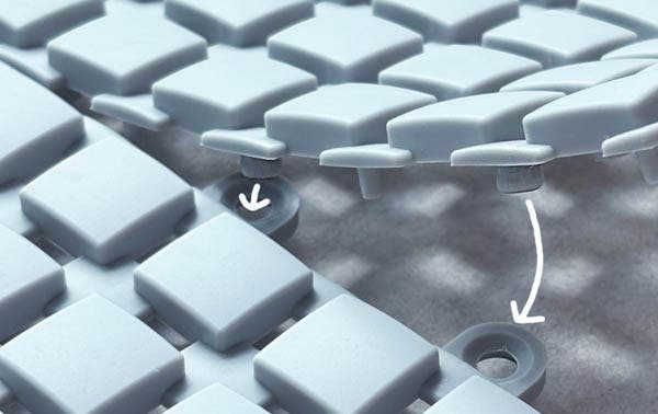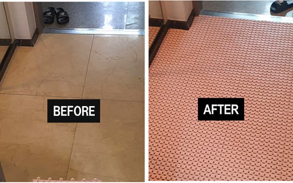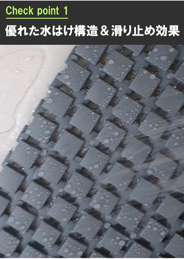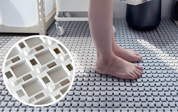 NARANIマットを敷いておけば、セル構造のすき間から水がすばやく排出され、床が乾きやすくなります。