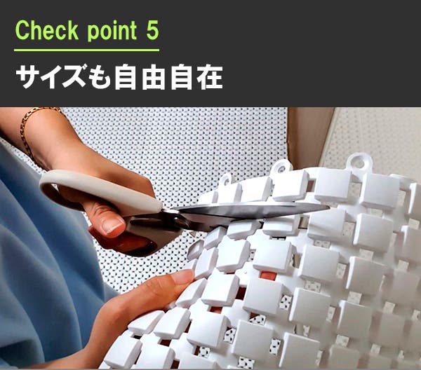 パチッとはめるだけで簡単に取り付け・取り外しができ、誰でも手軽に設置ができます。ハサミでカットできるので設置したい場所にぴったり合わせられます。