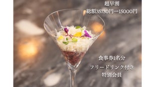 1.NARITAYUTAKA10周年記念 非公開会員限定和牛特別コース+フリードリンク付きフリーフロー 2名分(コース31,460円+フリーフロー6,000円相当)