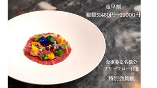 今回の土佐あか牛を使った特別なコース(15,730円+フリーフロー3,000円相当)を今後12,000円でご注文いただける権利に加え、