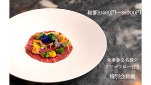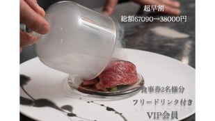 【一般非公開】会員限定和牛特別コース+フリードリンク付きフリーフロー 2名分(コース31,460円+フリーフロー6,000円相当)