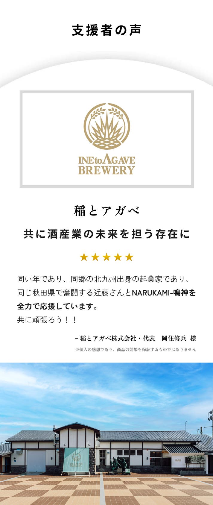 NARUKAMI(鳴神) は、その経験を活かした新たな挑戦です。地域の酒蔵「浅舞酒造」と連携し、高級日本酒ブランドとして、品質と物語の両面から皆さまに誇れる商品をお届けします。