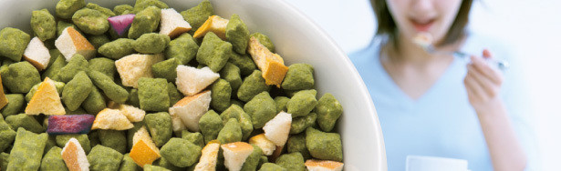 噛みごたえのあるあられを使っているため、自然と咀嚼回数が増え、食べ物が短時間で体内に入って血糖値が急激に上昇することを防ぐねらいがあります。