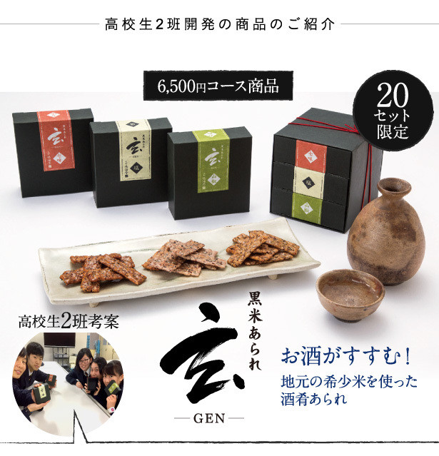原料にこだわる本物志向の方をターゲットに、京都すばる高校と同地域にある「中嶋農園」が育てる黒米「武士米」を使ったあられ。
