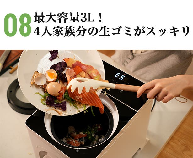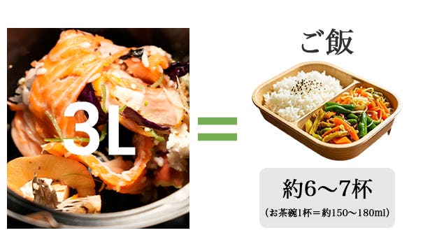 3Lの大容量で、生ゴミ処理もストレスフリー! ご飯に換算すると約6〜7杯分(お茶碗1杯=150〜180ml)、 家族みんなの1食分のゴミを、1回でまるごと処理。毎日たまる生ゴミも、まとめてスッキリ。忙しいご家庭にもぴったり!