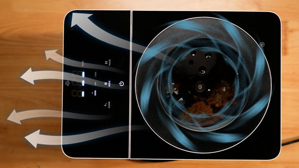 中央から強力に回転し、生ゴミを徹底的に粉砕。