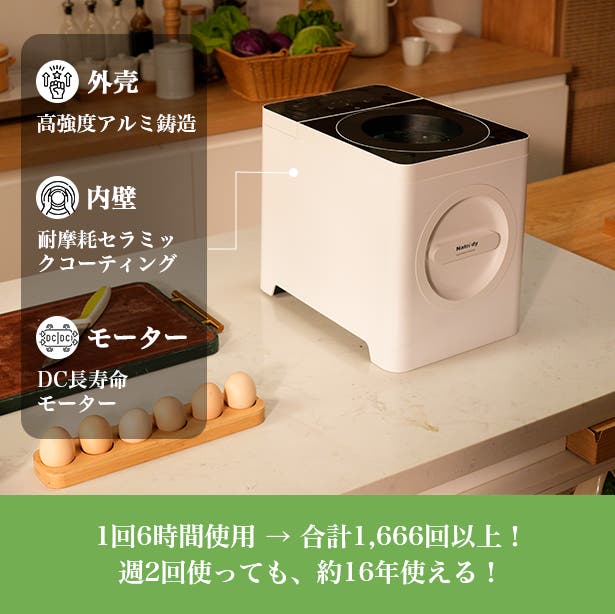 Natridyは、家庭用スマート家電の企画・開発を専門とするメーカーです。「毎日の暮らしを、もっと快適に、もっとサステナブルに。」をテーマに、技術とアイデアを融合させた製品づくりを行っています。本製品は、家庭から出る生ゴミの悩みを根本から解決するために開発された、最新モデルの生ゴミ処理機です。衛生面・脱臭・使いやすさ・デザイン性まで、細部にこだわり抜きました。