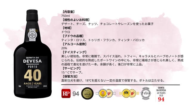 キンタ・ダ・デヴェザ40年熟成 トゥニーポート 40years Tawny Port(500ml)× 1点
