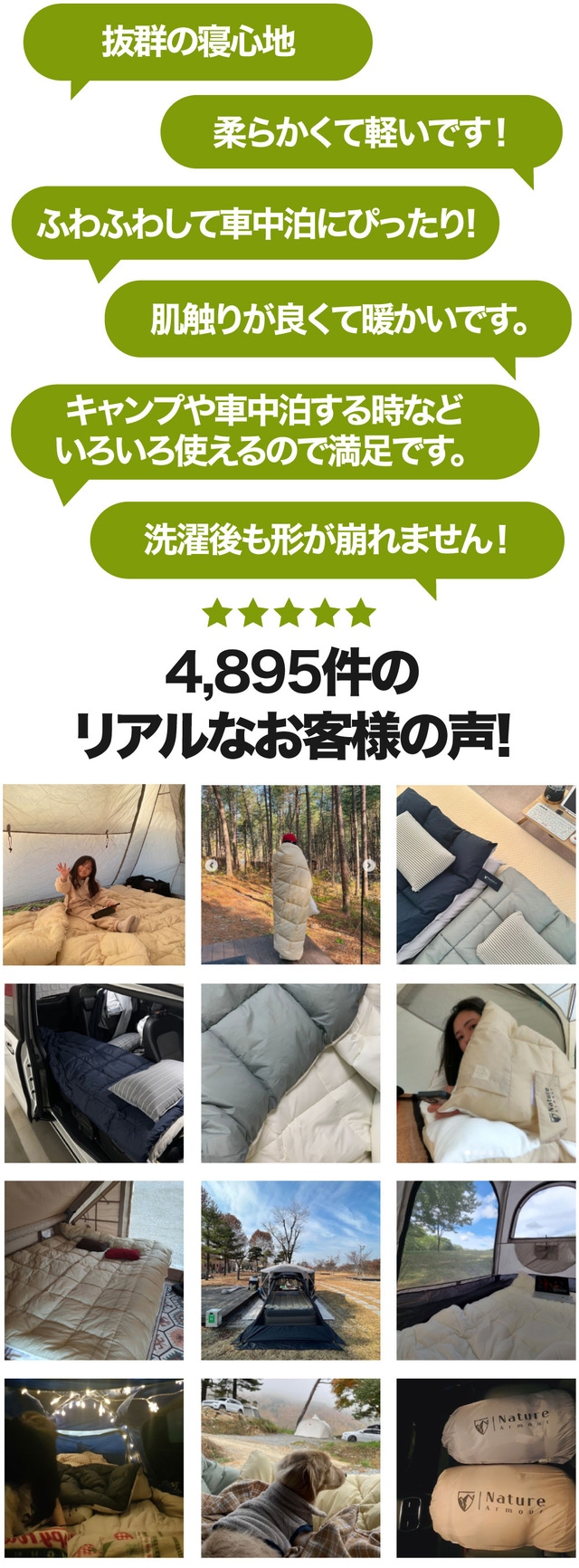 ・この商品を輸入しようと思った理由:キャンプや車中泊の日常生活で多用途に使用でき、洗濯機で丸洗いをしたり、乾燥機を使えるという点が魅力的だったので、プロジェクトを進めることになりました。
