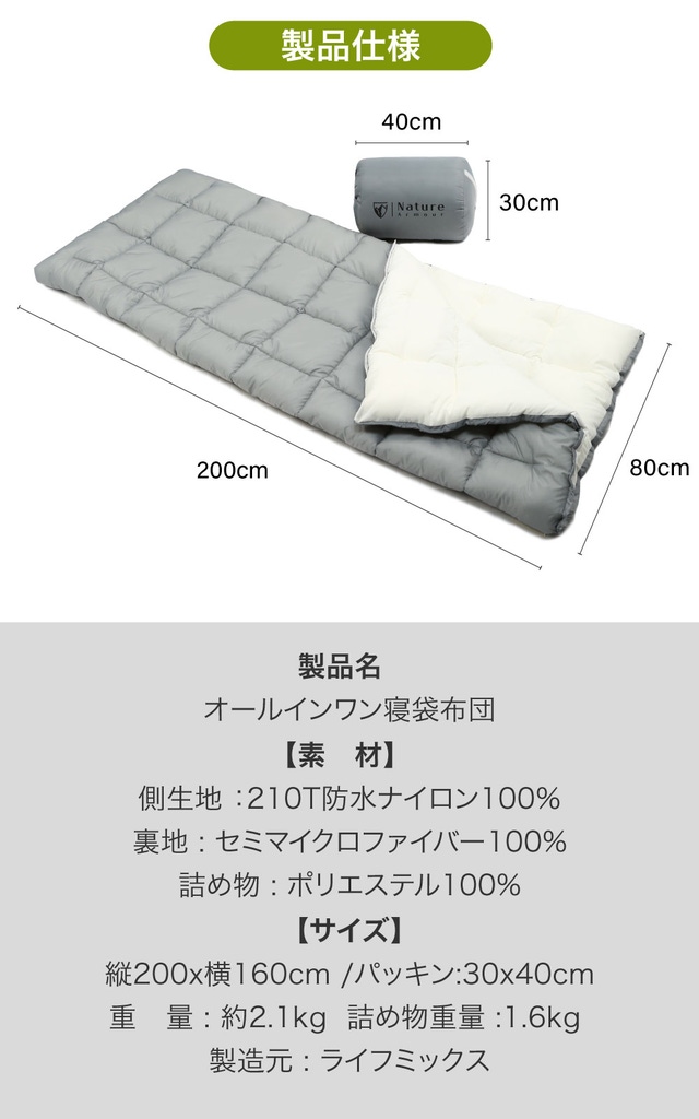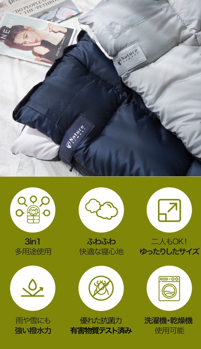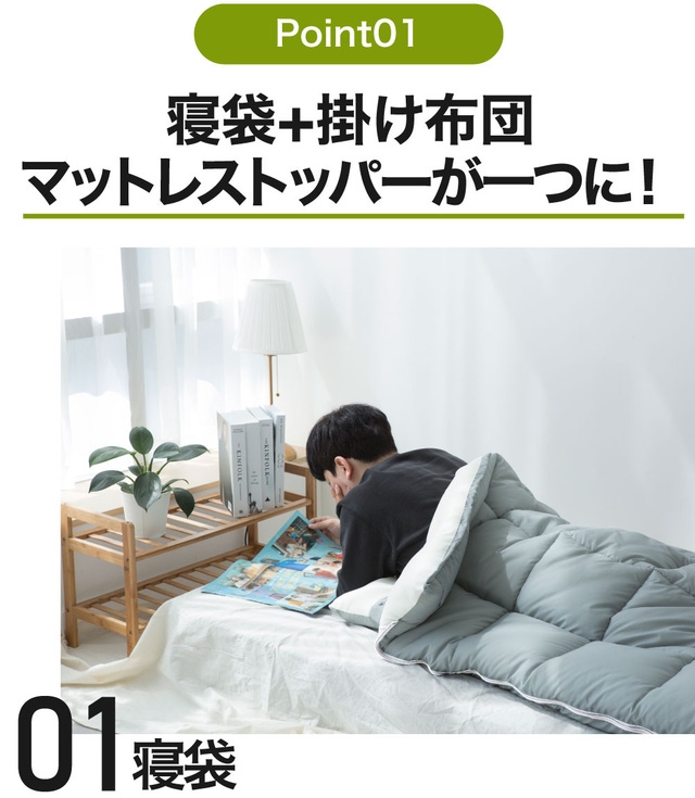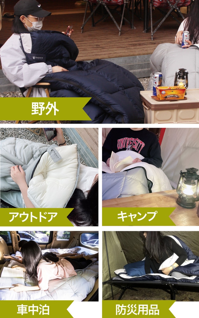 寝袋+掛け布団+マットレストッパーが一つになったALL IN ONE寝袋布団なら!どんな場所でも快適に眠れることができます!