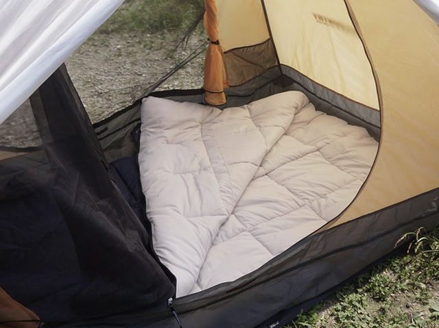 寝袋を広げると掛け布団やマットレストッパーに変身します!