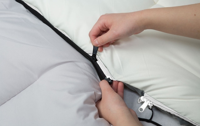 布団側面のファスナーをつなぐことでツインエクステンションで、より広く快適に使用できます。