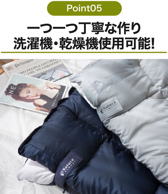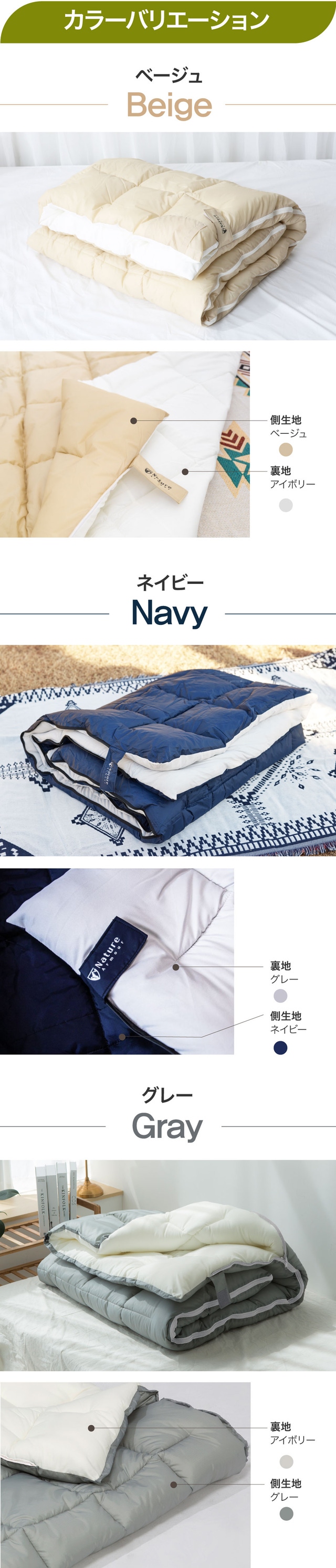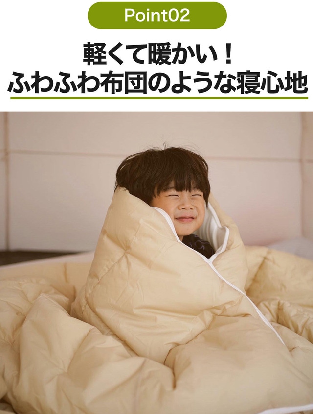 - ふわふわで暖かい保温性を持ったエアロールファイバーを使用し、洗濯後もまとまらない優れた復元力