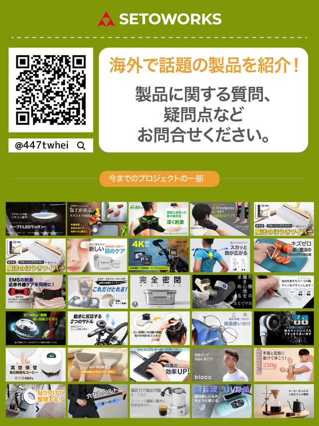 ※使用感などに関しては、感じ方に個人差が予想される商品でございます。そのため、使用感などに関する返品・返金はお受けいたしかねます。 ※初期不良以外に関する返品・返金はお受けいたしかねます。 ※開発中の製品のため、デザイン・カラー・素材などの仕様が一部変更になる可能性がございます。 ※モニター環境によって、画像の色が実物と異なって見えることがございます。 ※応援購入の数が想定を上回った場合、製造工程上の都合などにより出荷時期が遅れる場合がございます。 ※想定を上回る皆様から応援購入をいただき、量産体制をさらに充実させることができた場合、一般販売価格が予定価格を下回る可能性がございます。 ※リターンの配送が完了するまでセトワークスはNature Armourの日本における独占販売権を有する正規代理店です。並行輸入品が発生する可能性がございますが、並行輸入品には正規代理店による製品サポートを受けることができません。 また、正規代理店を通じて購入することで、日本国内での流通に必要な各種認証の取得やの関税の適切な処理が担保されます。 ※一部国内に類似商品が出回っている可能性がございます。弊社では他社の類似品に関してもお問い合わせには対応できませんのでご了承ください。 ※本文中に記載させていただいたスケジュールはあくまでプロジェクト公開時点の予定です。応援購入の性質上、配送遅延の恐れがございます。 ※原則として配送遅延に伴る応援購入のキャンセルはできませんが、リターン配送予定月から6か月を超えた場合には希望者に限りキャンセルにて対応させていただきます。