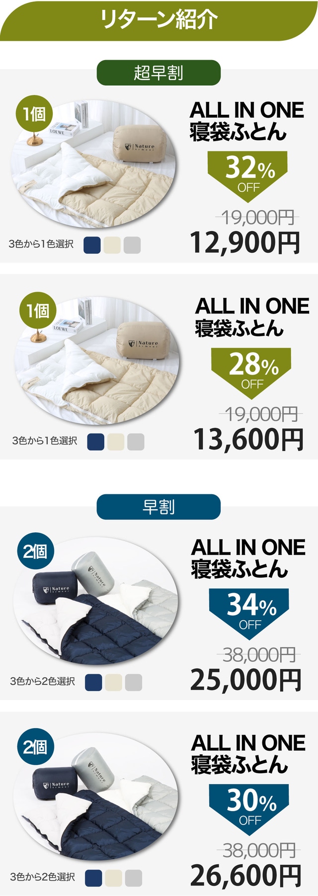 【早割】キャンプから日常生活まで「ALL IN ONE 寝袋ふとん」2個