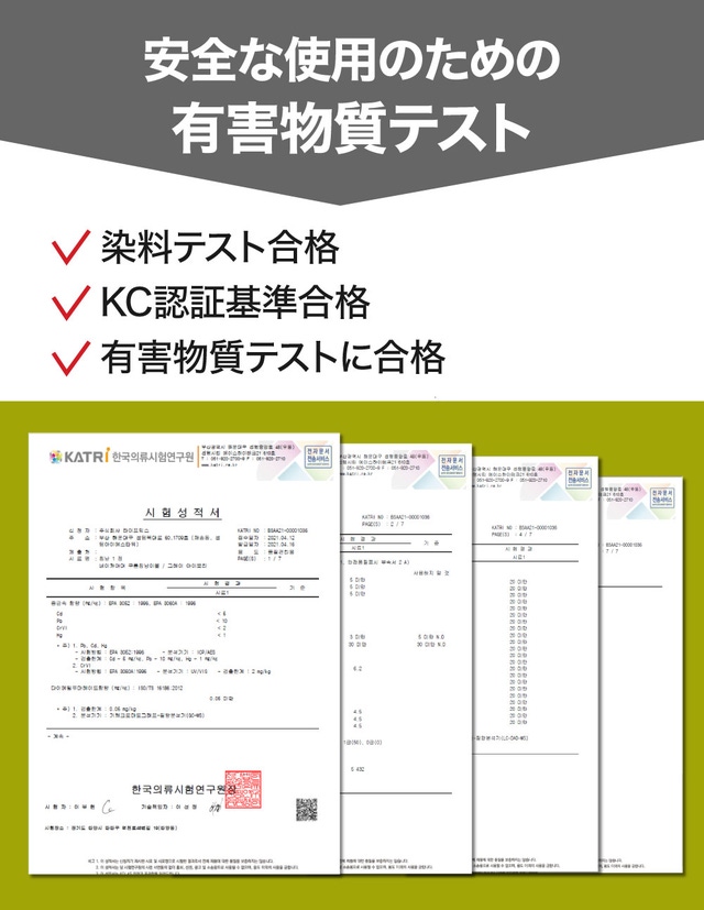 オールインワン寝袋布団は、4大重金属・染料・フォームアルデヒド・PH・ノニルフェノール・アリールアミンなどの有害物質テストを通過し、安全性を立証しました。