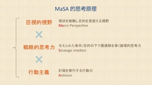 この3つの頭文字をとって、私たちは『MaSA的思考能力』と呼んでいます。