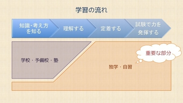 教科書や参考書の内容をわかりやすく体系的に教えたり、受験テクニックを教えたりすることは、確かに大事です。ですが、勉強はスポーツなどと同じで、教わるだけでは出来るようになりません。実は自分で行う勉強(=独習)こそ、本当に大事な部分です。