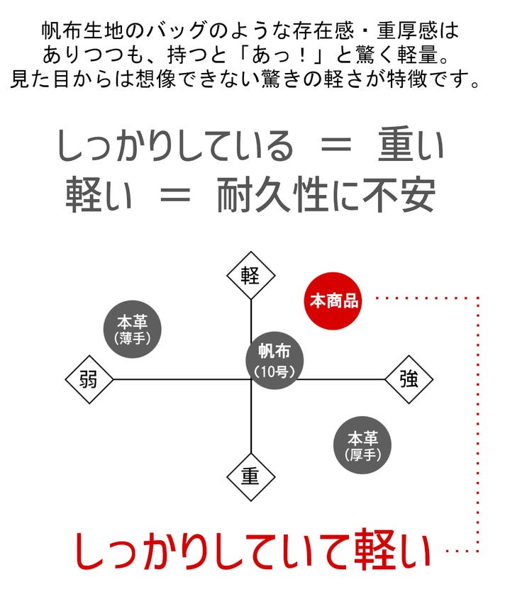見た目は「帆布生地」や「ダック生地」のようなガッチリした頑丈な質感ですが、持つと驚くほどに軽い。