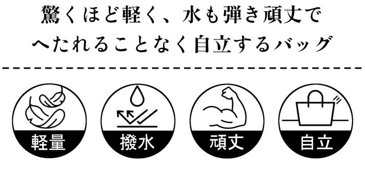 - 日常から夏のレジャー、アウトドアシーンや旅行まで幅広く活躍。 / 「軽量・撥水・頑丈・自立」