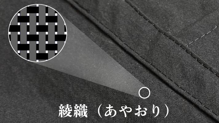 「糸1本1本を膨らませて、軽いままさらに太く」し、「布をタテヨコに圧縮する」ことで強度をUPさせる加工です。