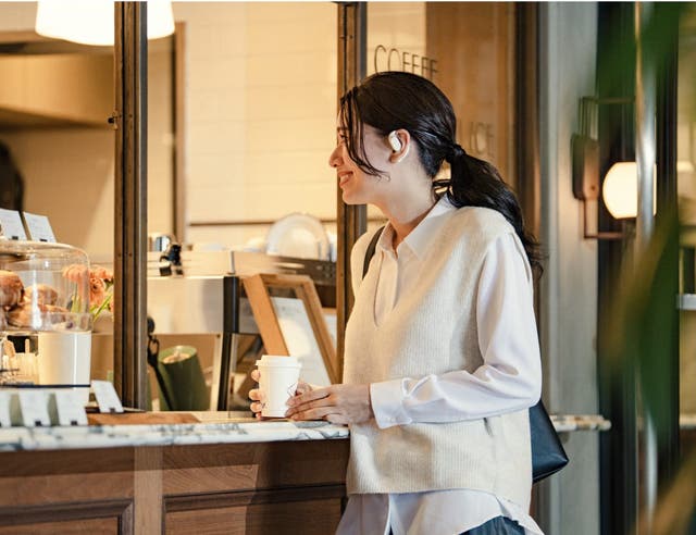 装着したまま会話が可能で、例えばカフェでの“コーヒーを一つ”といった注文もクリアに聞き取れます。こまめな脱着の手間がなく、快適さと利便性を両立したデザインです。
