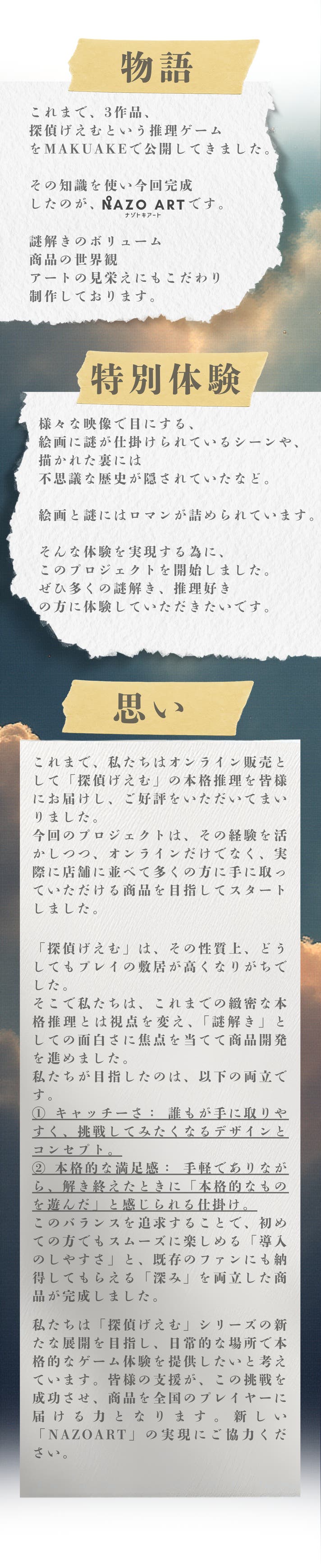 今回は、「NAZOART」という謎解きに焦点を当てた商品を皆様にお届けいたします。