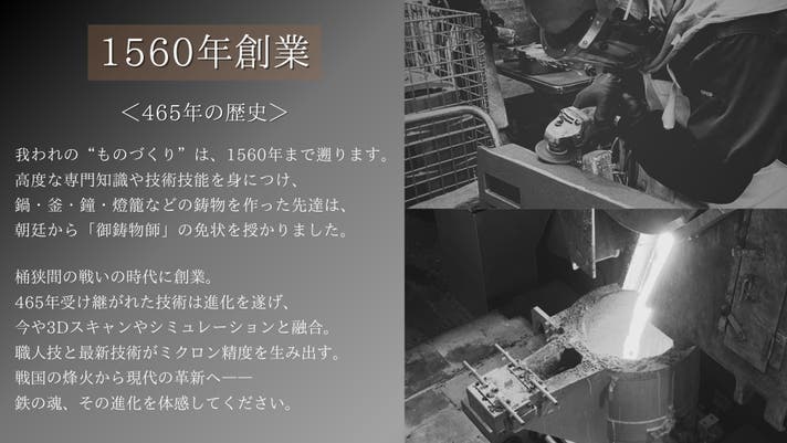 現在では、伝統技術の職人技と新技術であるICT・IoT、3Dデータなどを活用し単なる鋳物ではない【別品鋳物】へ進化しています。