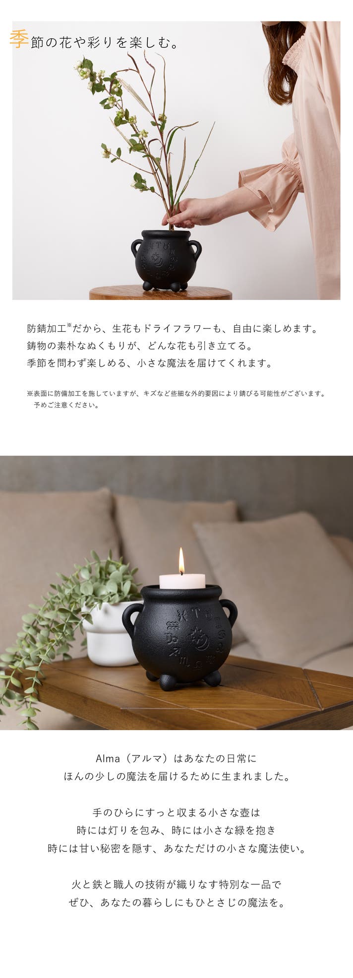 - 鋳物ならではの味わいのある質感とデザイン