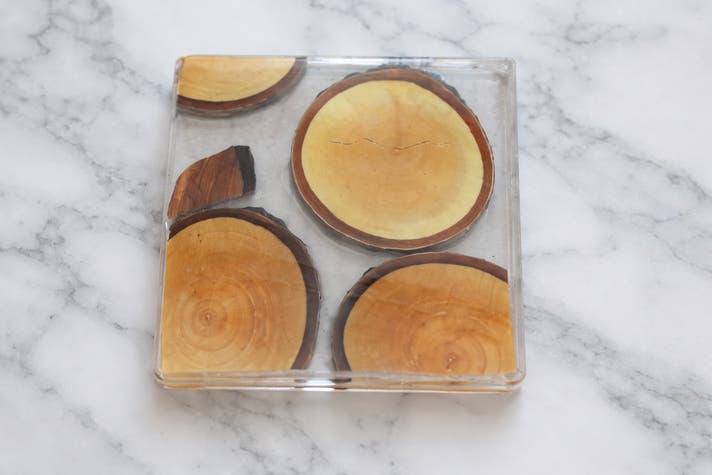 破棄される予定だった目黒川の桜を、剪定の際に出た枝からアップサイクルし、レジンで丁寧に固めて仕上げたハンドメイドのコースターです。