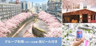中目黒の桜を一望できる、レストランのビル最上階・Schmatz(シュマッツ)6階スペースを、お花見シーズン限定で特別開放し、シュマッツで人気のジャーマンクラフトビール Weizen(ヴァイツェン)/Helles(ヘレス)の缶ビール付きで、ゆったり楽しめる“屋内お花見の場”をお楽しみ頂けます。