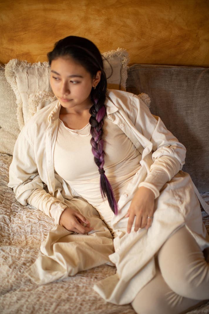 従来の草木染めに比べて鮮やかで深みのある発色ながら、色落ちや色ムラも出にくいため、デイリー使いするインナーでも安心です。