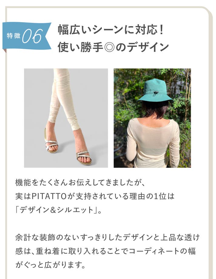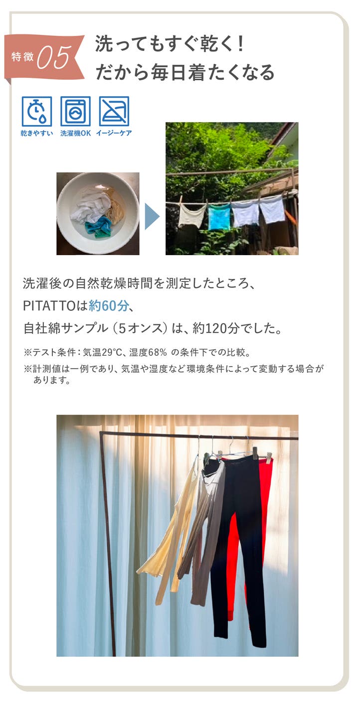 PITATTOは、「肌ざわり」「通気性」「乾きやすさ」「フィット感」「デザイン性」――