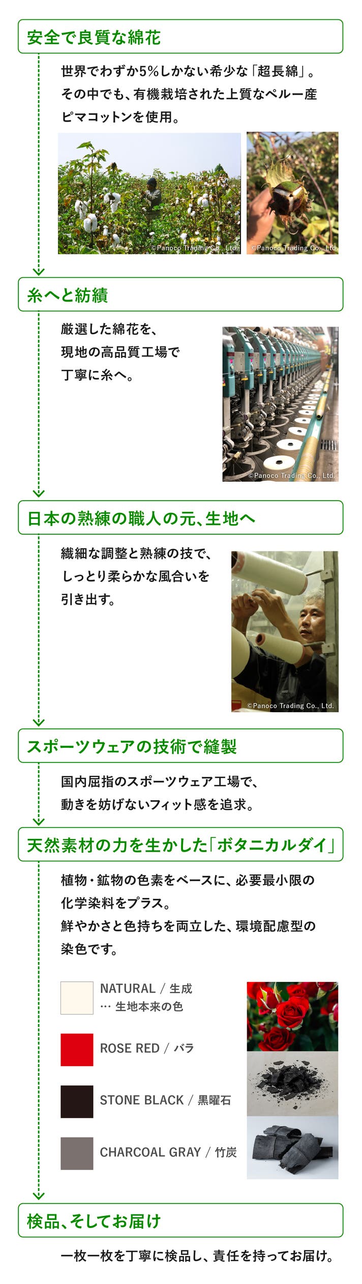 悔しい思いを抱えながら、諦めずに探し続ける中でついに出会ったのが、オーガニック栽培の超長綿〈ペルーピマ〉から編み上げた生地です。