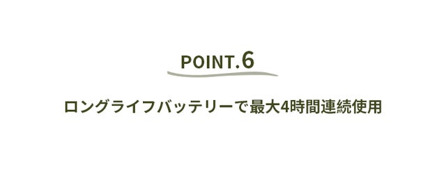 2000mAhの高性能リチウムポリマー電池を内蔵し、1回の充電で最大4時間も使用が可能です。