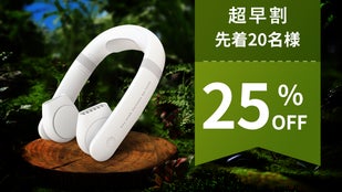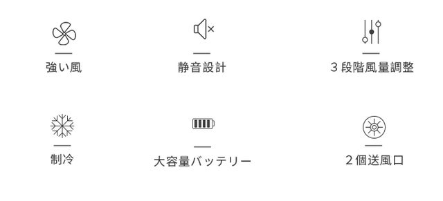 - 風量は3段階調整。風の角度も変えられ、25dBの静音設計で快適に涼める。